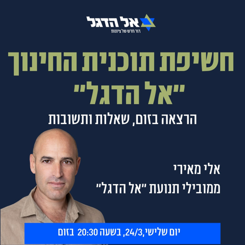 Join us for an online introductory meeting and open discussion with El Hadegel - a new political movement founded by reservists and public servants, committed to building Israel’s future.