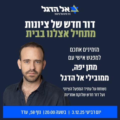 תנועת אל הדגל היא תנועה פוליטית חדשה שהוקמה על ידי משרתי מילואים, יזמים ומובילים בחברה האזרחית, כדי להביא דור חדש של ציונות לפוליטיקה הישראלית, דור שיבטיח בית בטוח ומשגשג לעם היהודי בארץ ישראל.