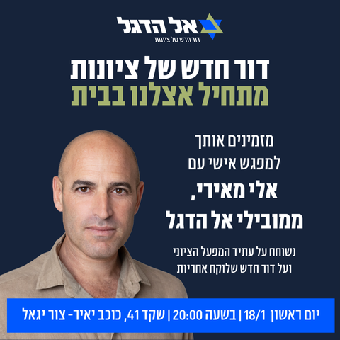 תנועת אל הדגל היא תנועה פוליטית חדשה שהוקמה על ידי משרתי מילואים, יזמים ומובילים בחברה האזרחית, כדי להביא דור חדש של ציונות לפוליטיקה הישראלית, דור שיבטיח בית בטוח ומשגשג לעם היהודי בארץ ישראל.